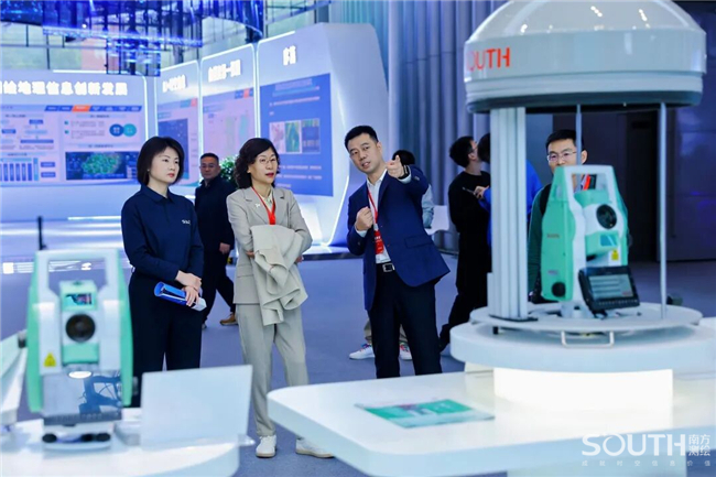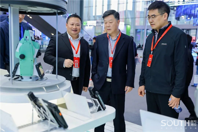 自然资源部党组成员、副部长庄少勤在南方展台前驻足停留,对国产全站仪桂冠之作——NT10机器人颇为关注,仔细询问了NT10在各行业领域的应用情况,对南方测绘的国产化之路表示肯定。庄副部长还关切了集团海外市场布局规划,以及光电仪器、激光产品的核心技术优势与热销产品的全球市场竞争力,鼓励南方立足优势,稳健发展。